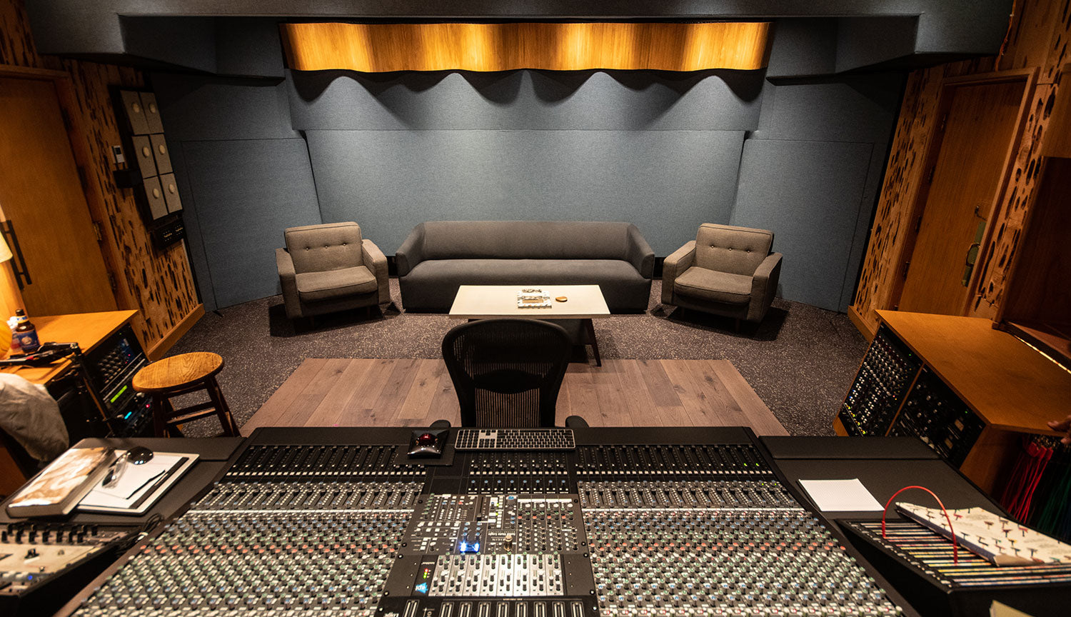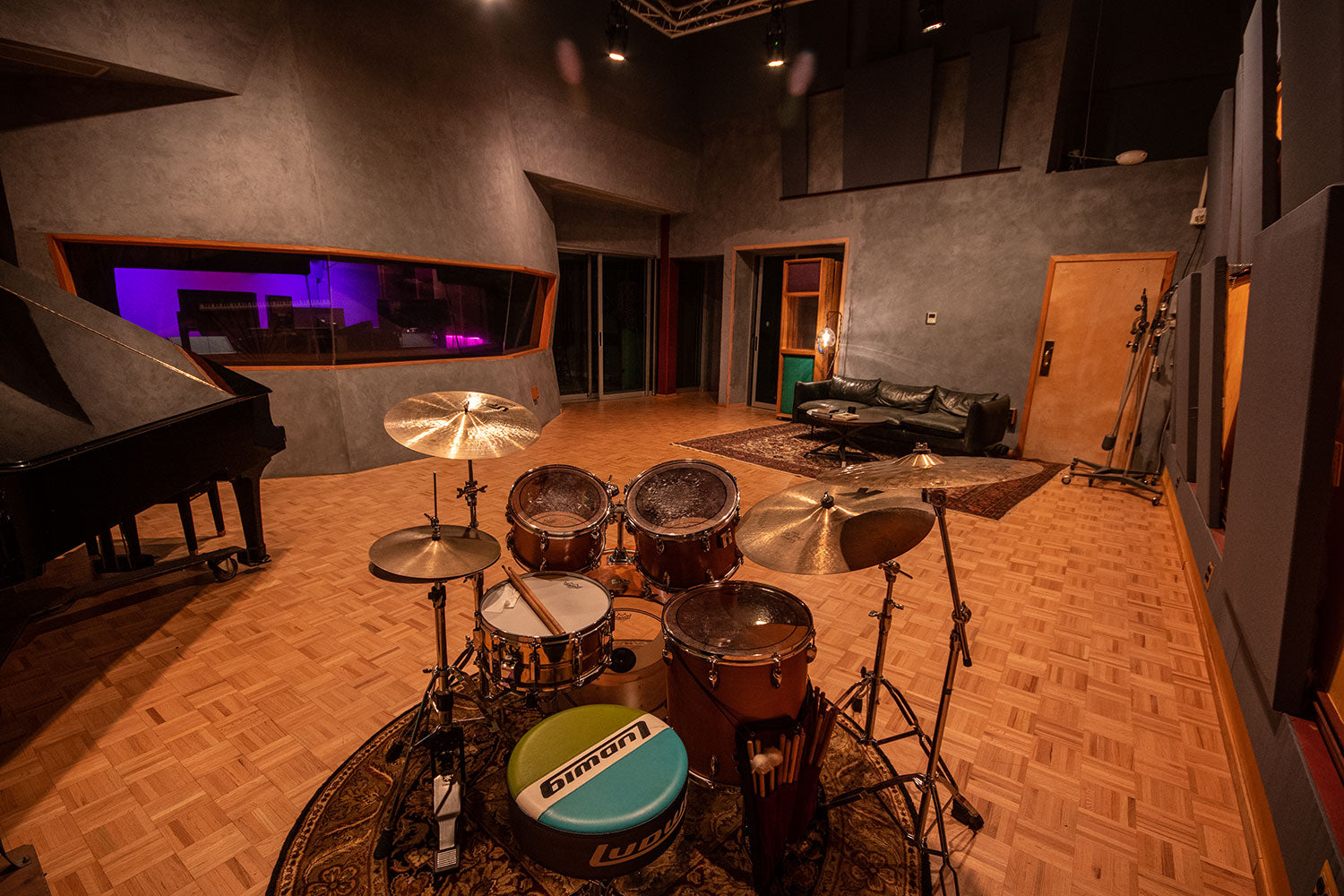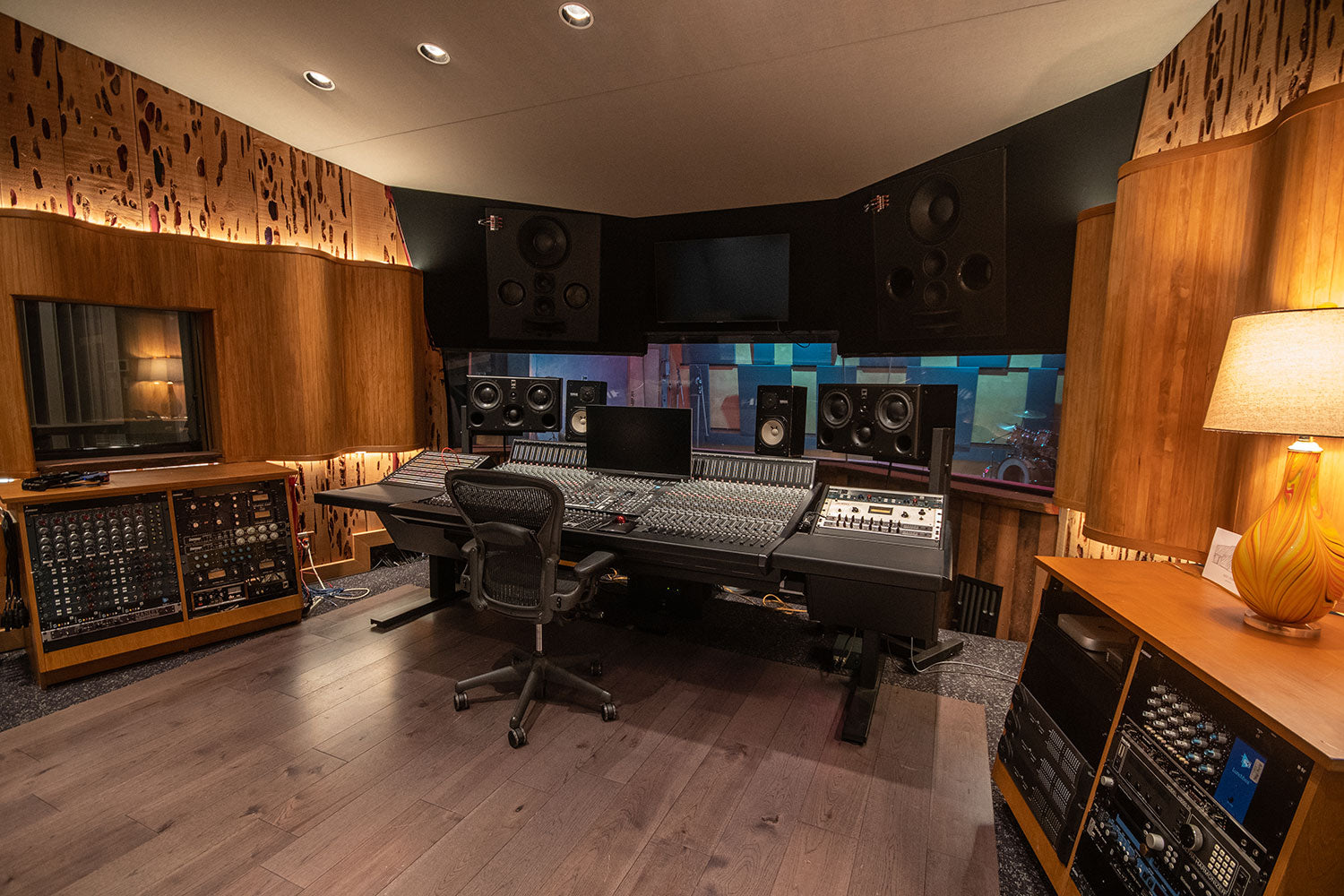 The newly rebuilt control room offers outstanding acoustics and exceptional bass response, thanks to extensive design upgrades. It features custom 15” 3-way soffit-mounted mains with dual 18” subs. Additional monitoring is handled by ATC 45s with subs for midfields and Yamaha NS10Ms for nearfields. At the heart of the control room is a 48-channel SSL Origin Analog Console, complemented by an extensive collection of vintage outboard mic pres, dynamics, eq’s and reverbs.